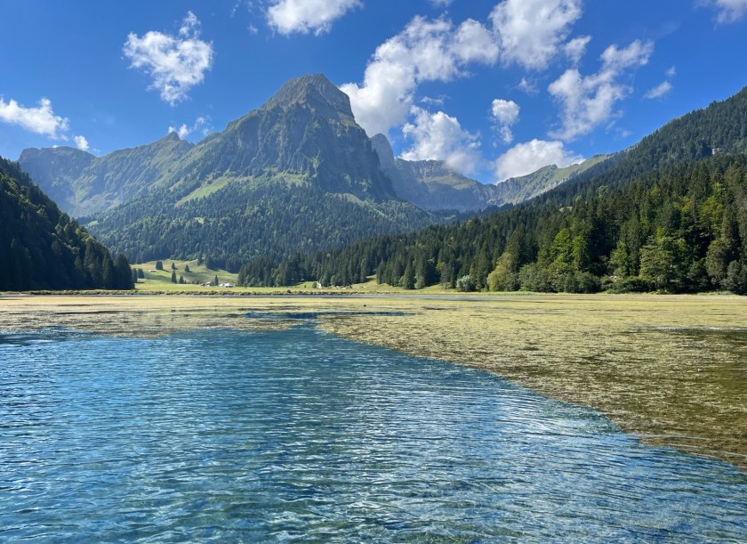 Wie oft bietet eben dieses Leben auch den Zufall als Lösung für verzweifelt Gesuchtes an und so sind wir fündig geworden in einem Bild, welches im firmeninternen Chat von unserer Mitarbeiterin Helena Vogler gepostet wurde als «Beweis», dass unser Tauch- und Untersuchungsteam an ihrer Arbeitsstätte am Obersee bei Näfels (GL) angekommen und produktiv am Werk ist. Nachstehend nun das Ausgangsbild «Obersee» als Basis für das Drucksujet auf dem Klima-Fächer …