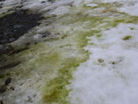 Vorheriges Bild Nächstes Bild Grünalgen verfärben Altschnee. Foto: © AquaPlus Grünalgen verfärben Altschnee.