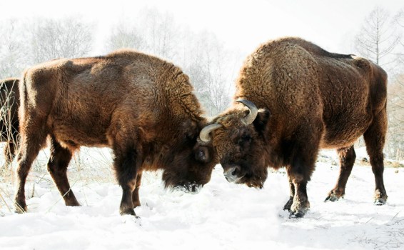 Vorheriges Bild Nächstes Bild Wisent Zwei Wisent Bullen messen ihre Kräfte. Hier in Russland. Nicht im Urner Reussdelta. Bild: Alexandr Frolov